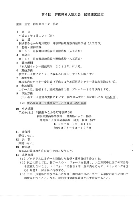 2013.3.10 第4回 群馬県6人制ホッケー大会