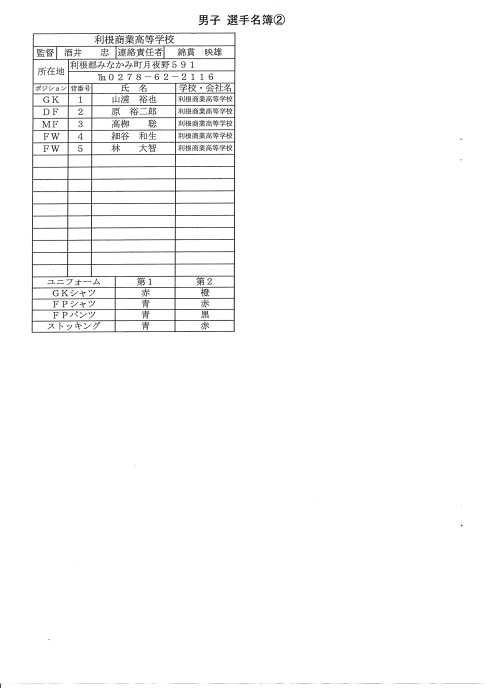 井上 右川 山崎 横溝(佑) 安養寺 酒井GK 京極 高橋 野崎 新井 (10名)