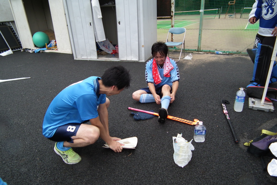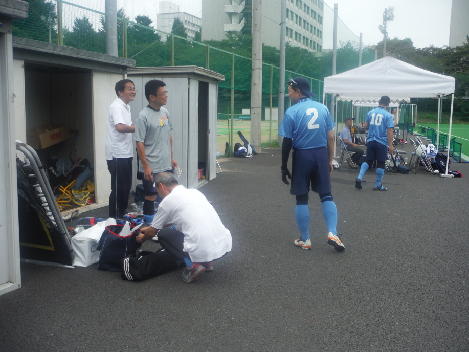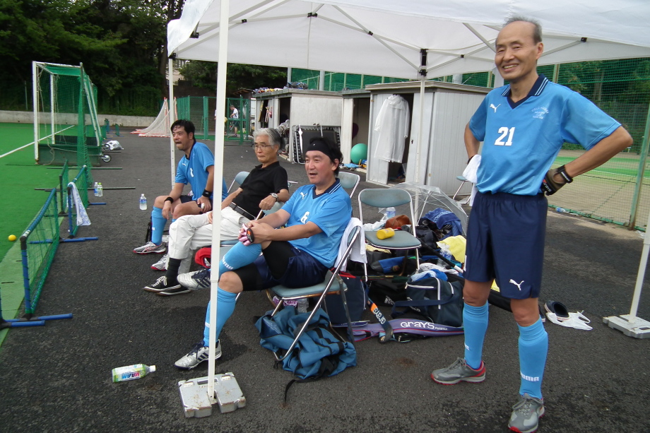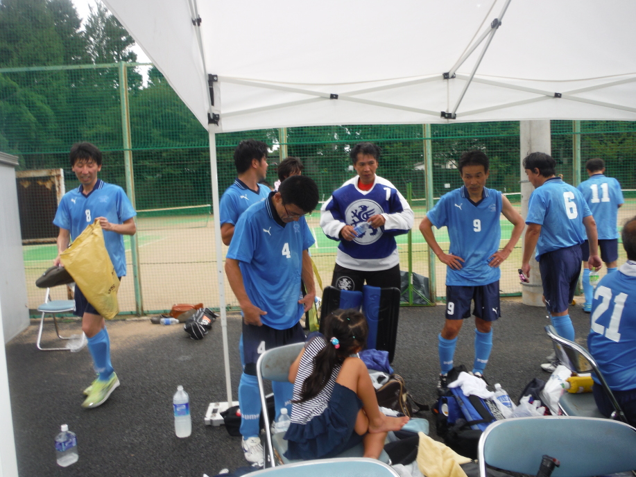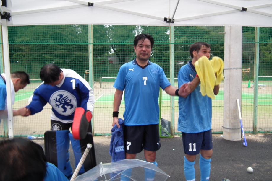 終了後 本格的に降ってきて、皆テントの中で 着替え。。試合に勝つと、、試合後も和やかに冗談が飛び交いました!